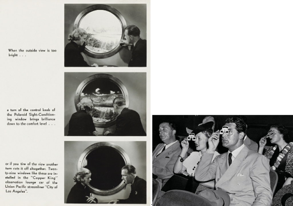 Polaroid Corporation had its IPO in 1937. Land never did succeed in getting the big auto makers to adopt his material for reducing headlight glare. Another company had patented the idea of using polarizers for that purpose, although they had no idea how to create the polarizing material. Polaroid’s first big commercial success was polarized sunglasses, which removed glare. In World War 2, polarizers were used in goggles, gunsights, and reconnaissance cameras, and after the war polarized glasses were used to view 3D movies.