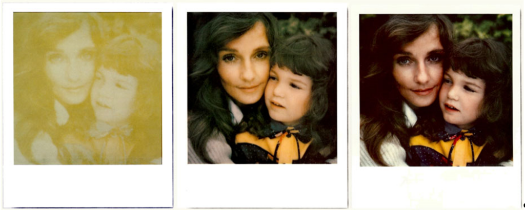 Rogers’ invention was a set of molecules that acted as both a color dye and developer. Color photography uses three dyes – magenta (white minus green), cyan (white minus red), and yellow (white minus blue). The peel-apart Polacolor film worked similarly to black-and-white in that the unexposed dyes migrated from the negative after development and stuck to the positive sheet.