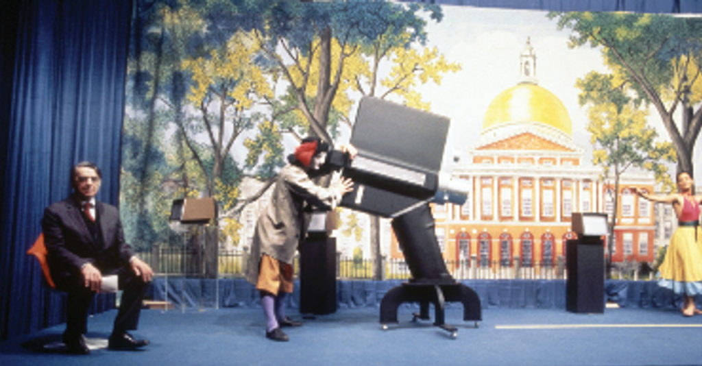 Polavision was unveiled to the world at the Polaroid Shareholders Meeting in April 1977. It was held in the large Polaroid warehouse in Needham, and it was always a special event. Wall Street analyst Brenda Lee Landry called it “the best show on or off Broadway every year.” At this one, organized by John McCann, after demonstrating the filming of a dancing Carmen, the 4000 in attendance were herded to a circus midway constructed behind the stage where they could film various scenes of actors, jugglers, and such themselves.