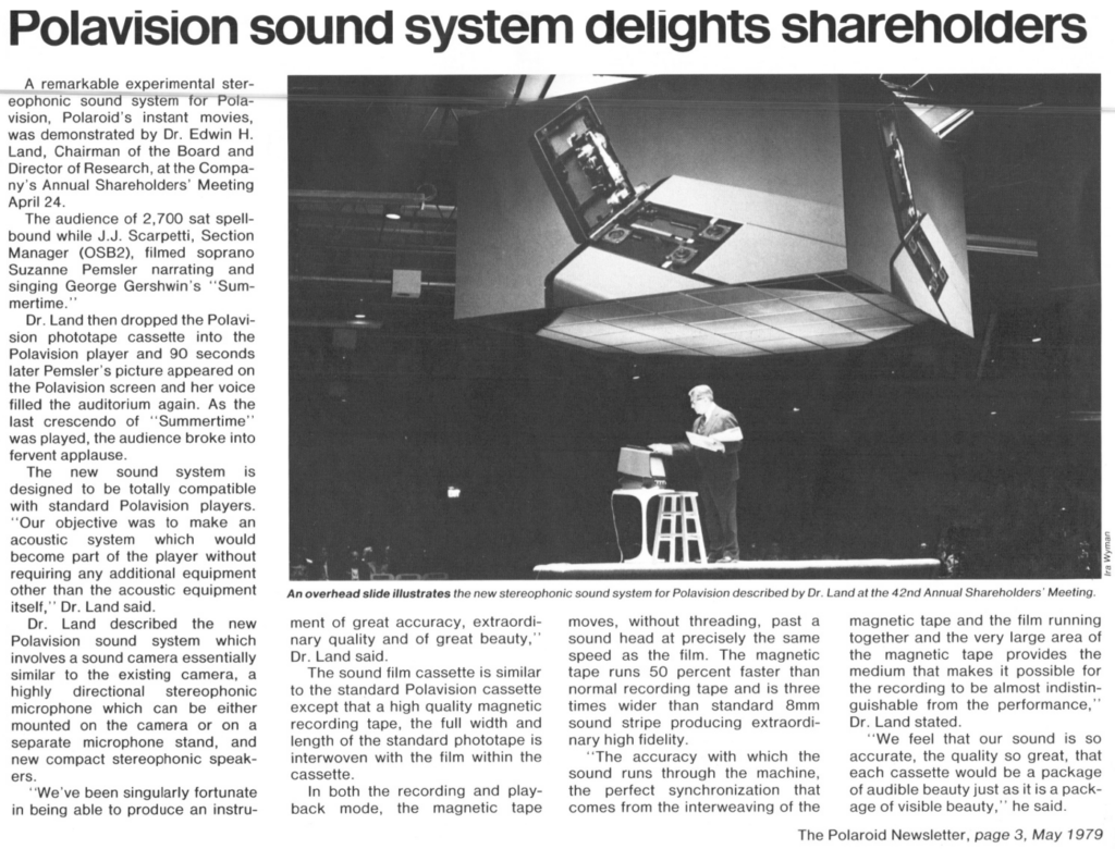 Although there is no record of it in the history books, we were in fact again center stage at the 1979 shareholders meeting, as reported in The Polaroid Newsletter.