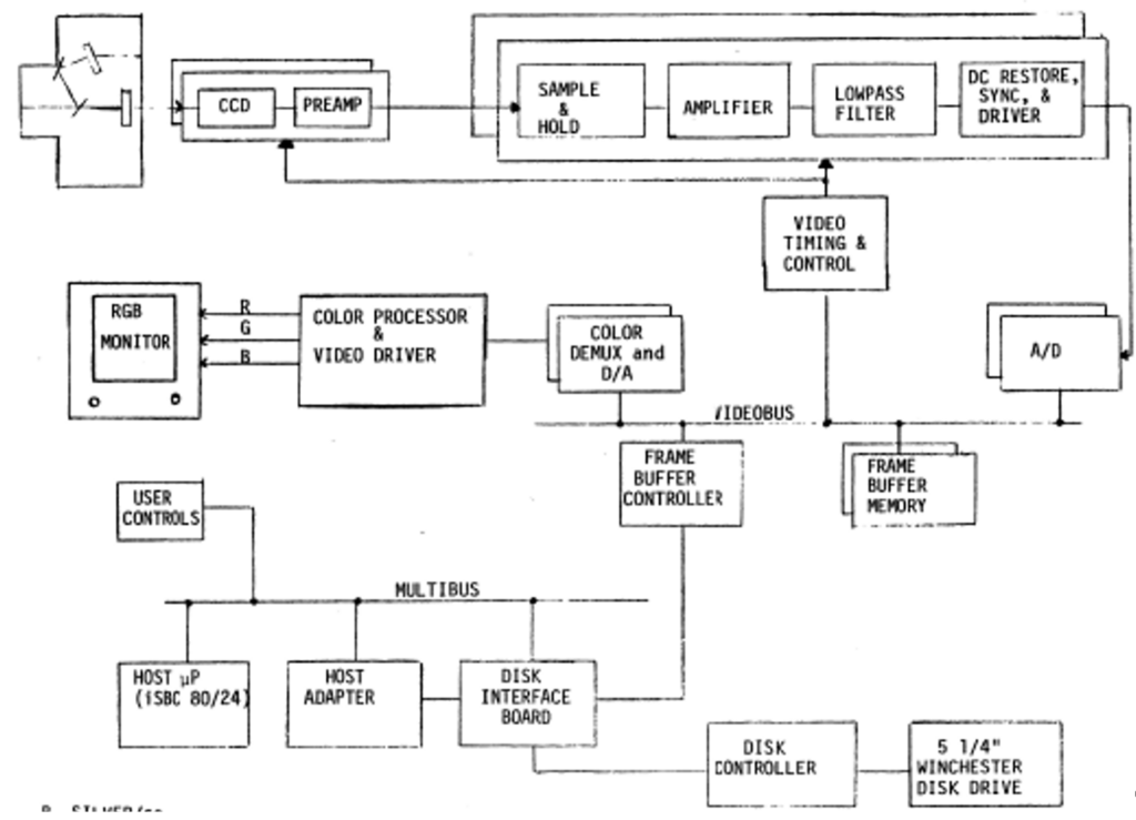 There was a second problem: We needed to see a preview of the captured still frame in the viewfinder, just enough data to check focus, exposure, and picture content. That would require modifying the architecture, adding a mini-frame buffer to drive the viewfinder.