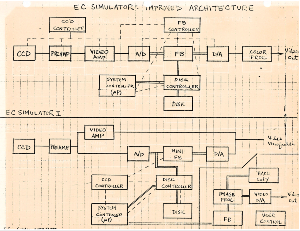 My part of the effort was called the Electronic Camera Simulator, affectionately known as the Shoebox. It looked a lot like Sasson’s device of eight years earlier. This was a prototype system to simulate the functional operation of a future electronic still camera product. It would have the target data rate, capacity, and image quality, but was not bound by product design constraints such as size, cost, and power drain. My team’s emphasis was not component design, which was the responsibility of others, but rather overall system design: