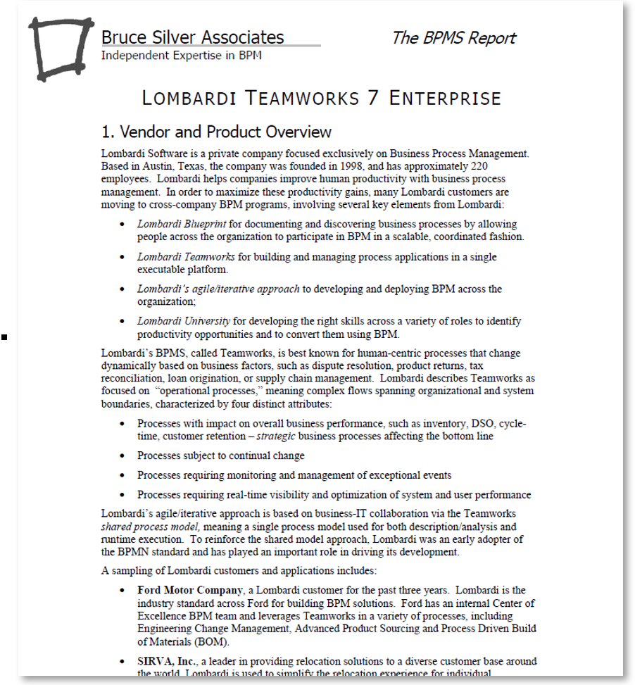 All this created great ferment in the BPM world and lots of new vendors, all of which was great for my business, both on the consulting and white paper sides. In addition, having done all this background research, I wrote up and sold a series of reports on BPM Suites (BPMS). There was a big report on the system technology, and individual reports on BPM vendors. The whole set cost several hundred dollars. When I got an order, I would have it printed at Kinkos and mail it out. I also charged the vendors to participate in the individual reports. Even though I worked out of my house in the total boondocks of Aptos, vendors would make the trek there to brief me. All in all, in the mid-2000s my business was very good.