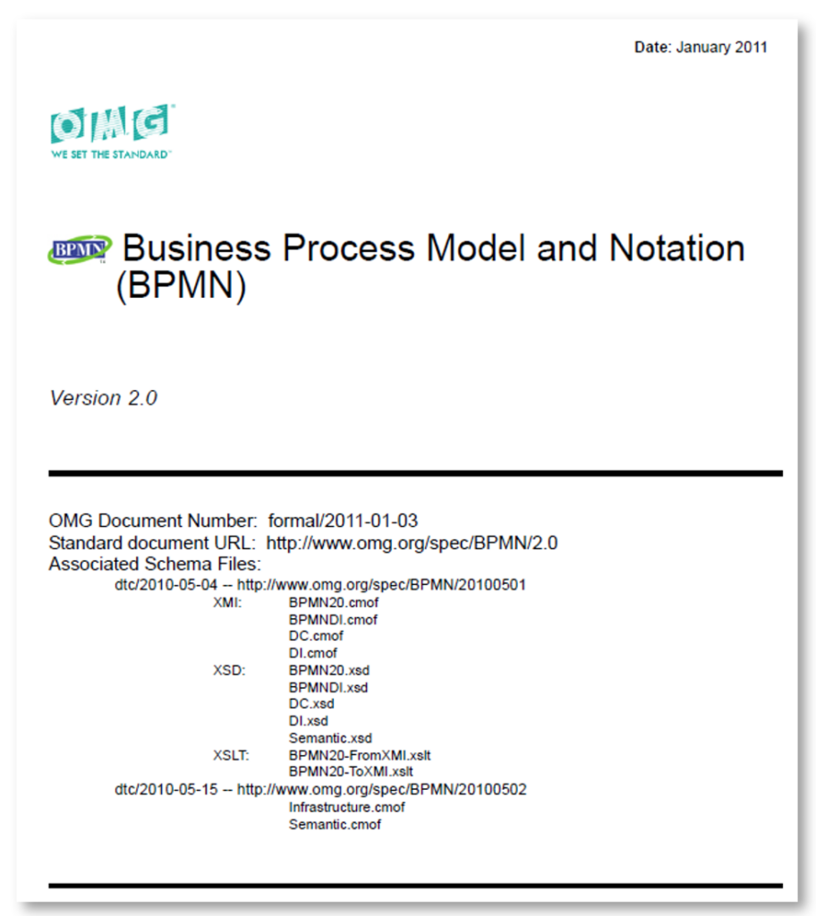 The audience for the BPMN spec is not process modelers or programmers but “implementers,” meaning vendors of BPMN tools. Consequently, the spec is not a tutorial on process modeling, but rules for software vendors to ensure their tools are conformant with the standard and, ideally, interoperable with each other. To that end, the language of the spec is often obscure and even misleading to the uninitiated. Also, because BPMN 2.0 is the work of a committee, it contains many elements that are never used in practice and have no business being there at all. But to the outside world, the spec is all the information they have.