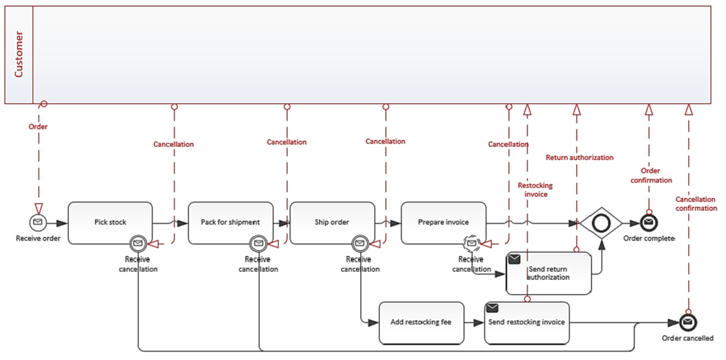 In addition, we needed a modeling methodology, also not covered by the spec. The Method is a prescriptive methodology for taking the information about how a process works – typically gathered in stakeholder workshops and interviews – and translate that into models that communicate the workings clearly and completely through the diagrams alone. It doesn’t tell you how to conduct those workshops or how to improve your process. Plenty of process improvement methodologies cover that. It simply provides a step-by-step approach to organizing the information so that its representation in the diagram is clear and complete. BPMN Style is a set of rules, in addition to those of the spec, intended to make the meaning understood clearly and completely through the diagrams alone. Method and Style is not about automation or process improvement. It’s simply about communicating meaning through diagrams.